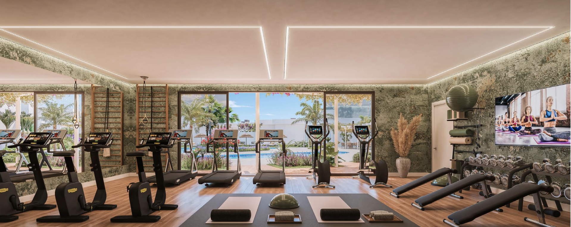 Piscina comunitaria, garaje privado, punto de carga para vehículos eléctricos, gimnasio, simulador de golf, zona chill-out & BBK.