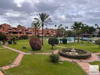 En la conocida urbanización Alhambra del Golf, junto a la autovía A7 y acceso directo a los mejores campos de Golf y puertos deportivos de la Costa del Sol, a 5 minutos de Puerto Banús y 15 de Estepona, les ofrecemos esta magnífica vivienda con impresionante terraza con vistas directas a las cuidadas zonas comunes de la urbanización.