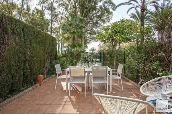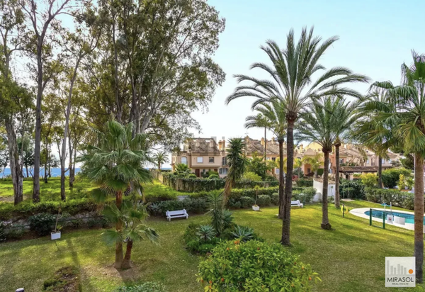 A escasos minutos del centro de Estepona, en primera línea frente al mar y en una preciosa urbanizacion privada con un magnifico encanto, les ofrecemos este extraordinario chalet adosado recientemente reformado.