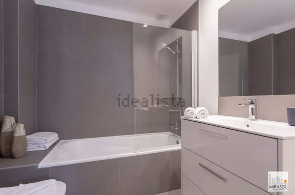 La vivienda cuenta con un amplio salón, dos dormitorio, dos baños y aseo, el baño principal en suite. Cocina amueblada con modernos electrodomésticos, armarios empotrados, aire acondicionado y calefacción.
